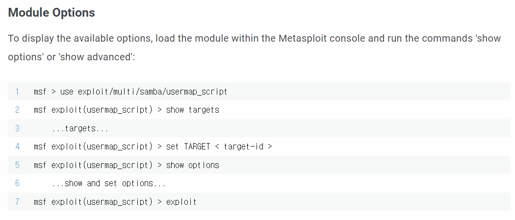 msf6 > use exploit/multi/samba/usermap_script //구글링 결과와 일치