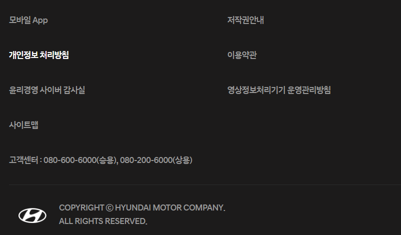 회사의 개인정보 처리 방침에 대해선 다른 항목과 다르게 첫 표기를 달리해야 한다.