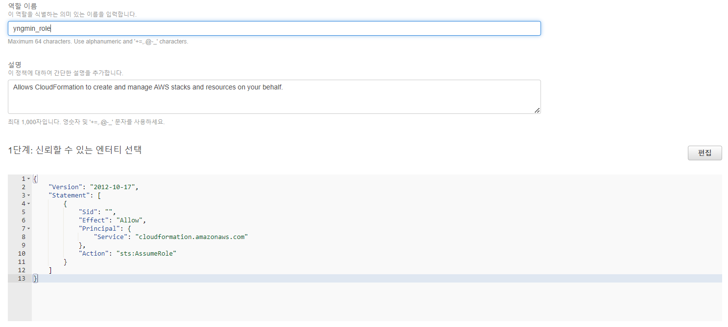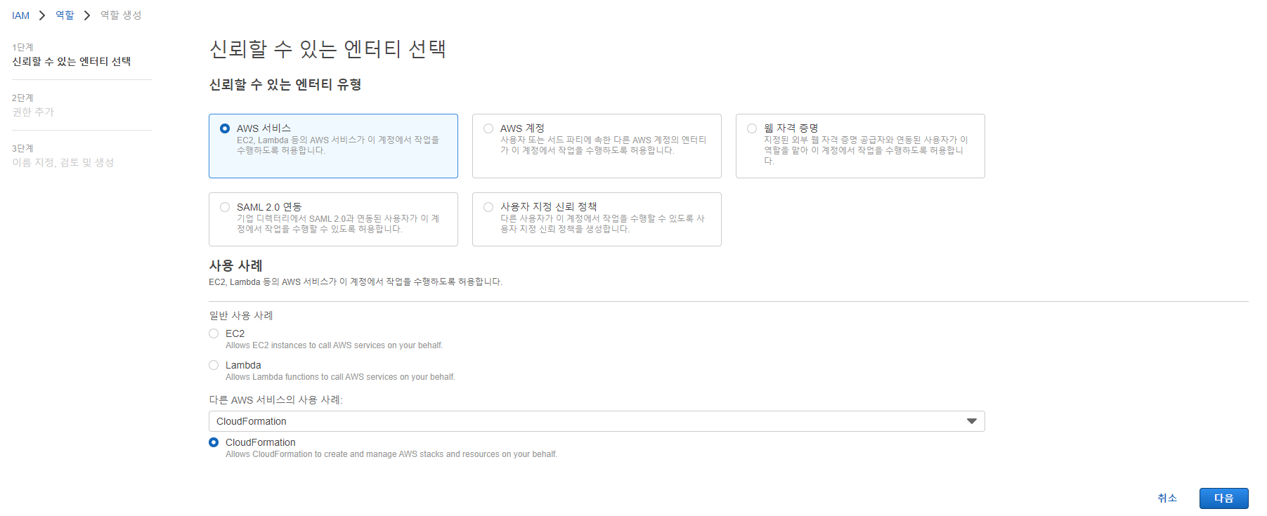 Role은 AWS의 서비스에 할당하도록 되어 있음,