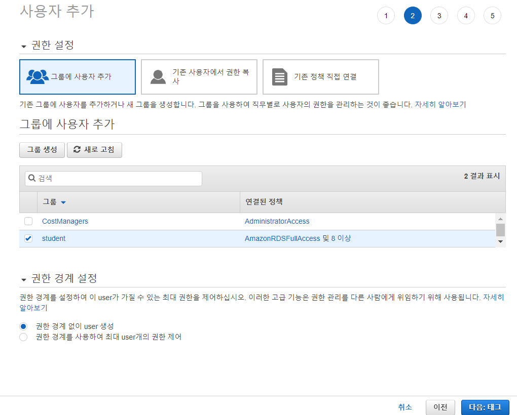 참고) 권한이나 정책은 사용자보다 사용자 그룹에 연결 지어 주는 것이 정보보안 관리에 더욱 용이하다.