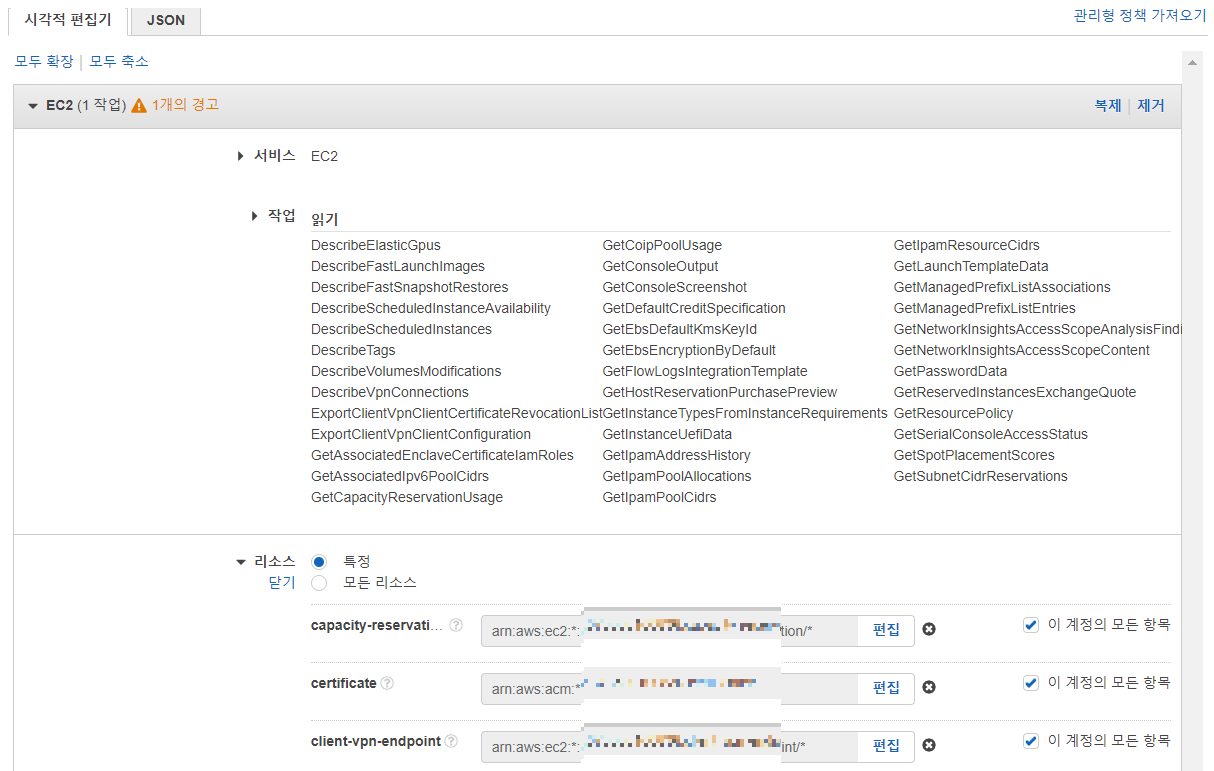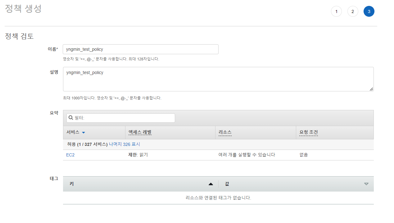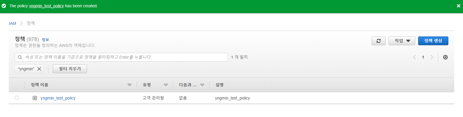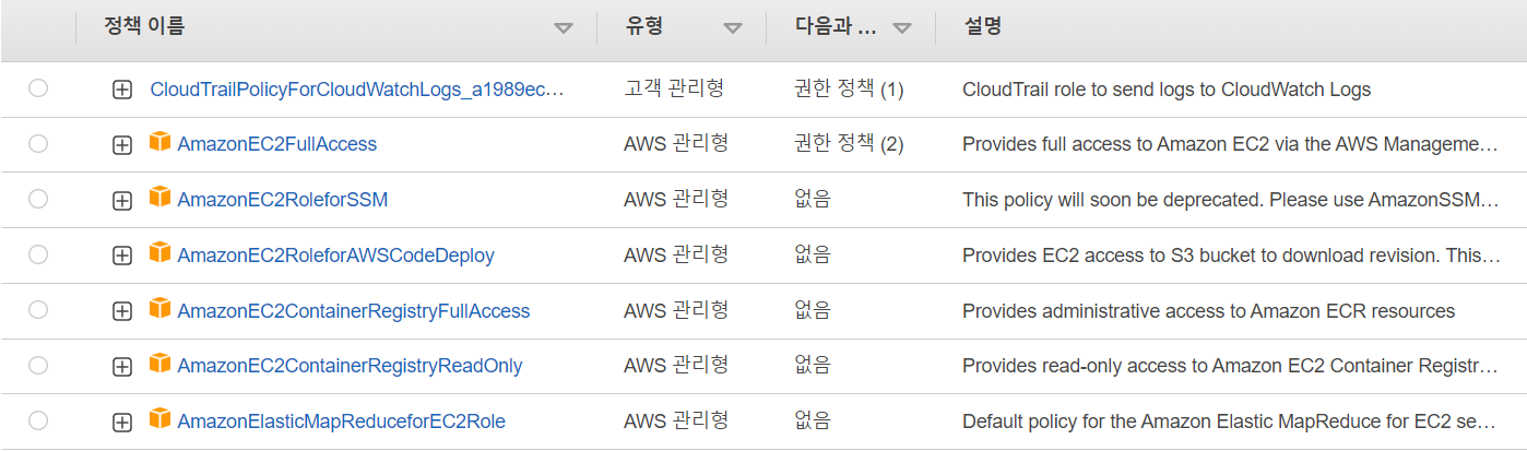 - 정책 이름 앞에 주황색 정육면체 아이콘이 있으면 AWS에서 만든 기본정책임 (삭제 불가 및 삭제하면 안 됨)
