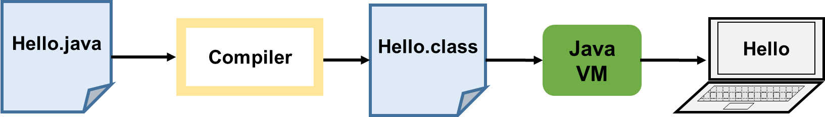 Java compiler (javac)에 의해 변환 된 Java byte code는 기계어가 아니기 때문에 컴퓨터(OS)가 이해할 수 있도록 JVM이 필요하다. 이러한 해석 과정은 C언어와 같은 네이티브 언어에 비해 느린 속도를 갖지만, Byte Code가 JVM을 거치기 때문에 OS에 종속받지 않고 CPU가 java를 인식하고 실행할 수 있는 장점이 있다.