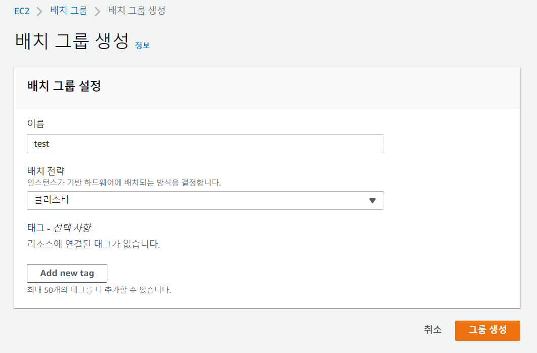 - 동일한 AZ(가용 영역)에서 여러 개의 EC2를 Cluster로 묶어서 실행하는 전략