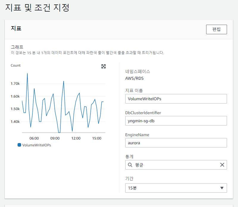 프로젝트를 진행하며 Aurora DB에 대한 사용량 모니터링 및 경보설정이 필수적임을 알 게되었다. AWS의 Cloud Watch기능을 사용하여 오로라 DB의 CPU 사용량과 쓰기 용량을 지표로 설정하여 관리자에 대한 경보를 설정한다.