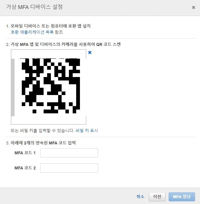 관리자 계정 - MFA추가, CLI원격 접속 권한 할당