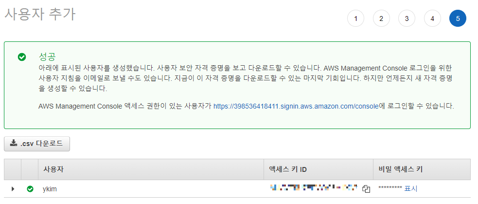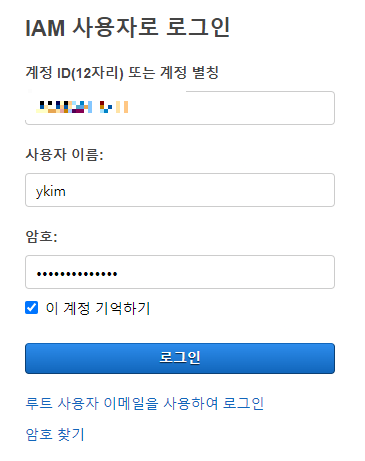 사용자 > 사용자 계정 선택 > 보안자격증명 > 콘솔 엑세스 관리 (비밀번호 설정)