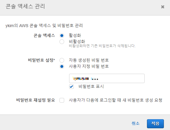 - 비밀번호 설정 (콘솔 액세스 활성화)