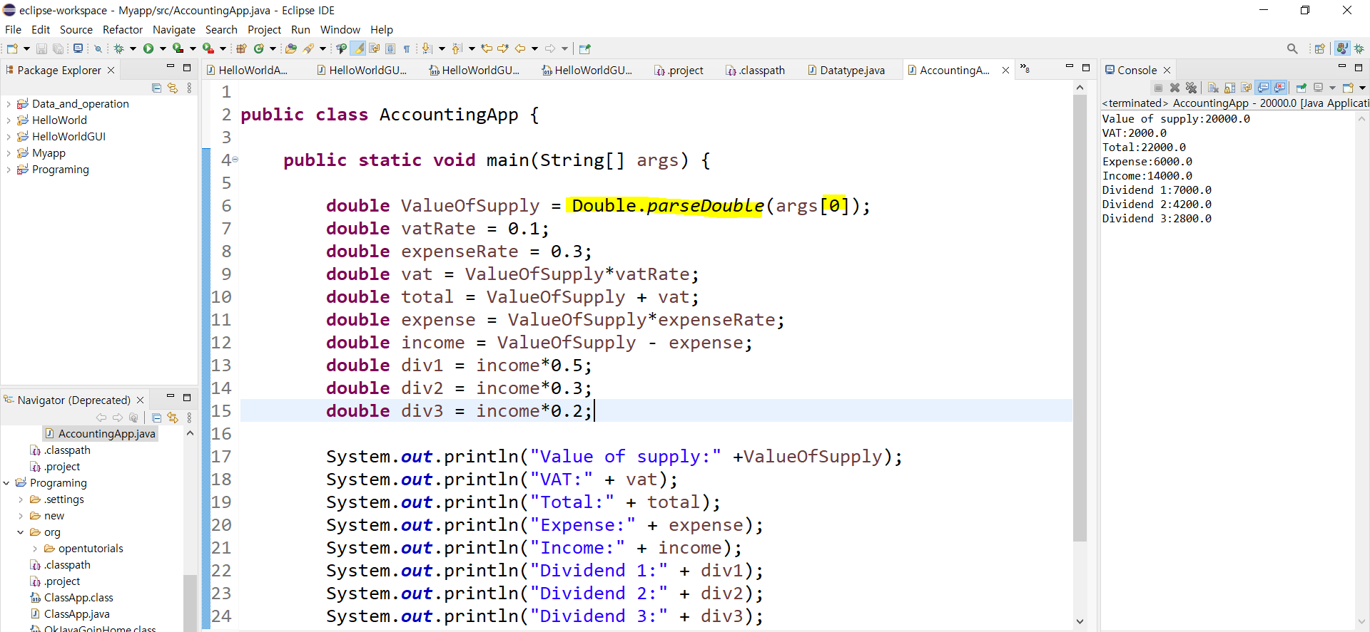 Run > Run Configuration > Arguments (20000.0 입력값 적용)