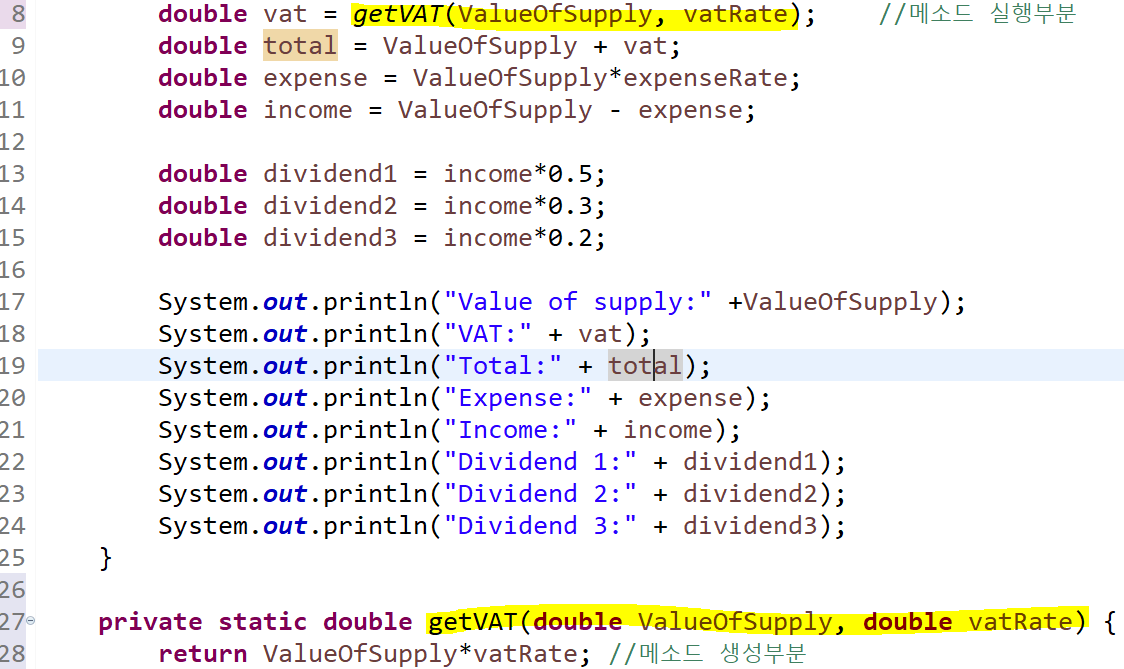 return ValueOfSupply*vatRate; //메소드 생성부분
