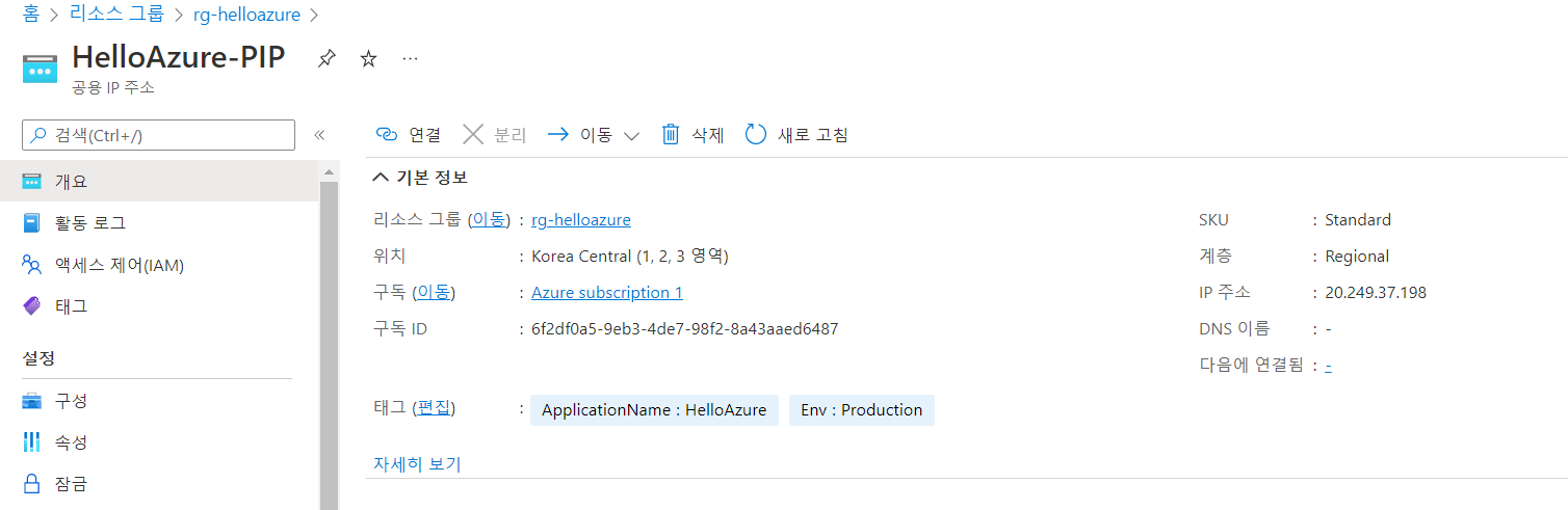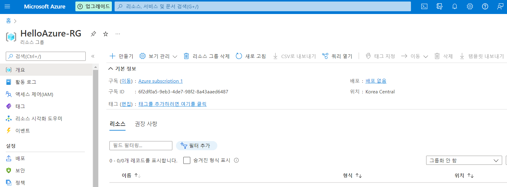 해당 리소스 > 리소스 그룹으로 이동 > 이동