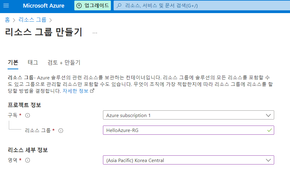 1. 리소스 그룹 만들기