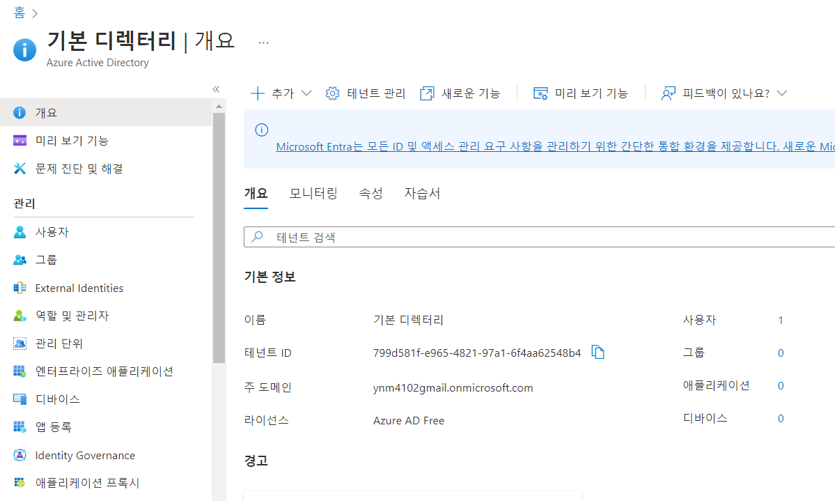 메인 > Azure Active Directory > 현재 테넌트 확인