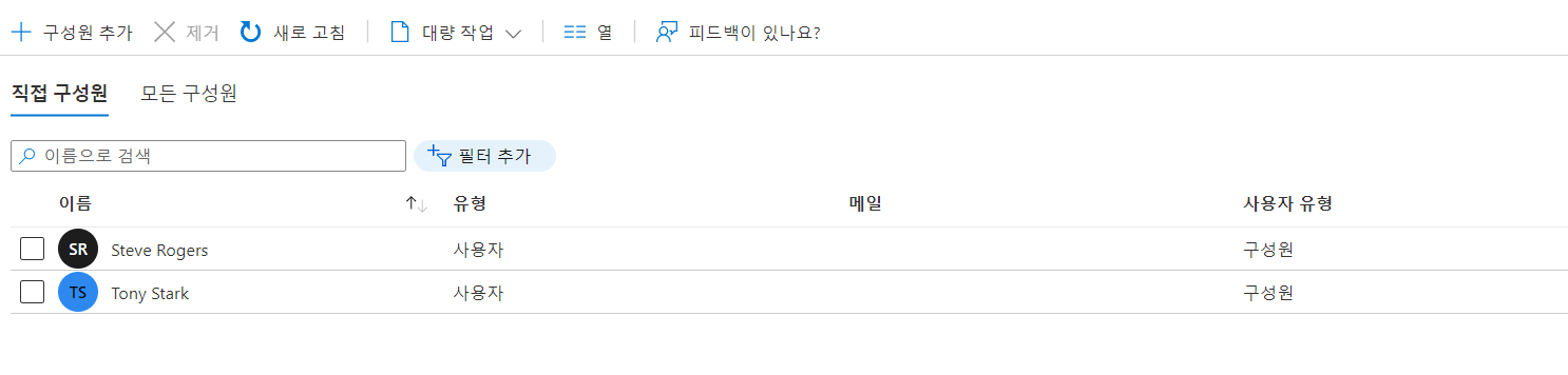 해당 그룹 탭 > 리소스에서 구성원 선택 > 구성원 추가