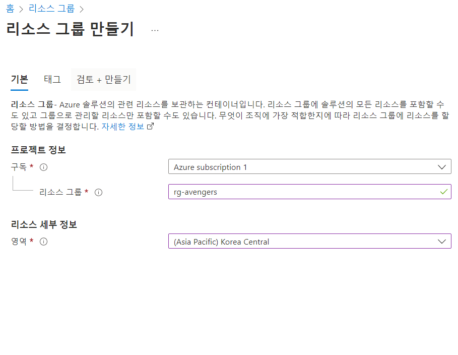 1) 리소스 그룹 생성