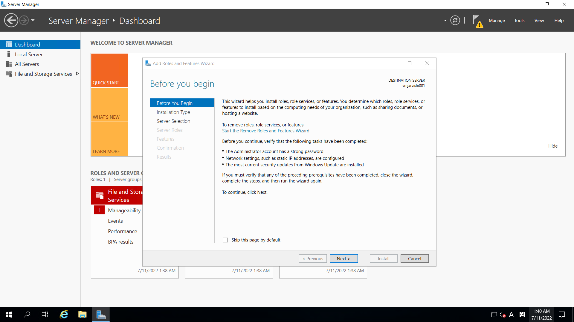 Server Roles항목까지 Next선택 > Web Server(IIS) 선택 > Add Features
