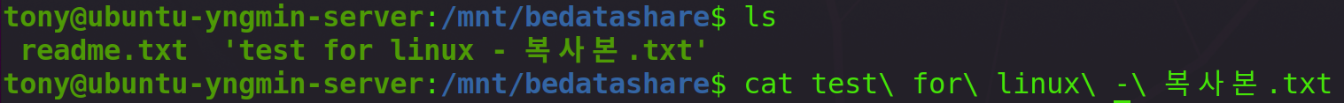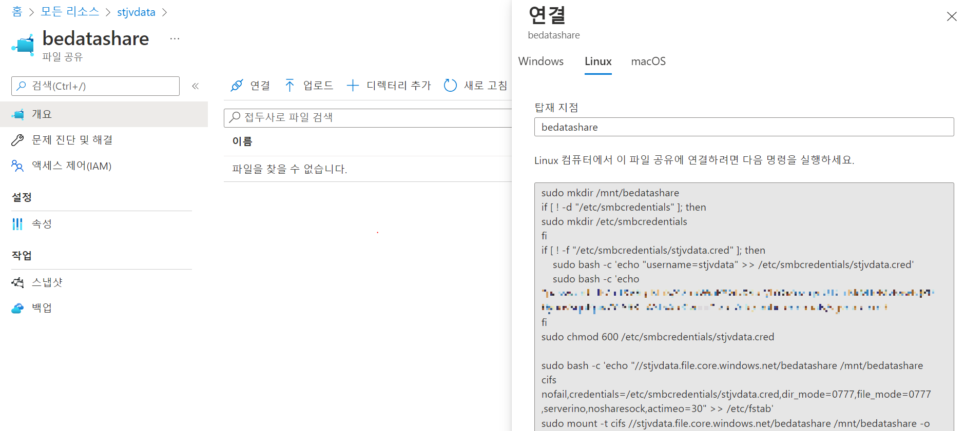 리눅스로 연결시킬 파일공유 리소스 > 연결 > Linux 선택 > 스크립트 복사