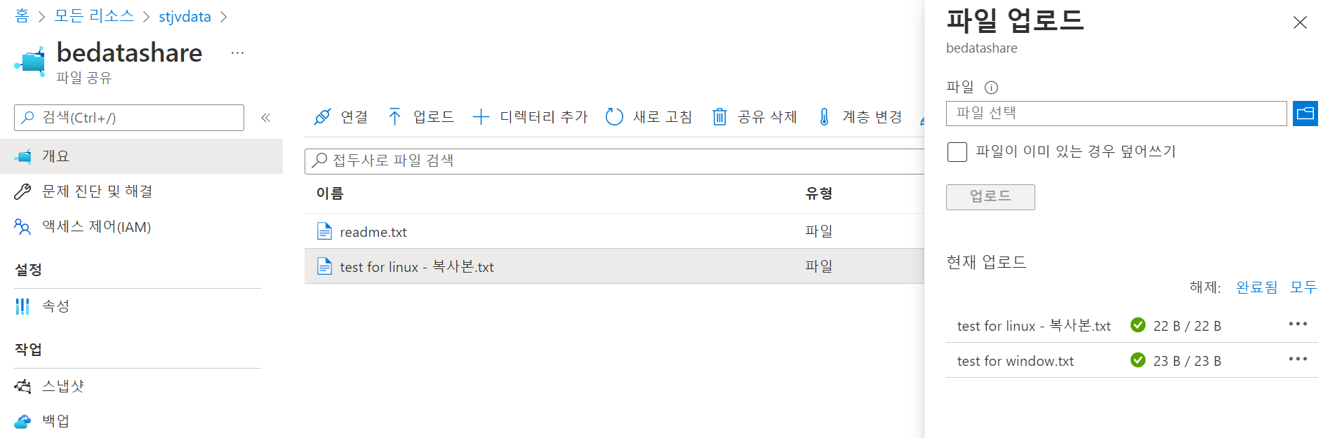 - 공통 Azure폴더로 업로드한 파일 Window, Linux에서 확인