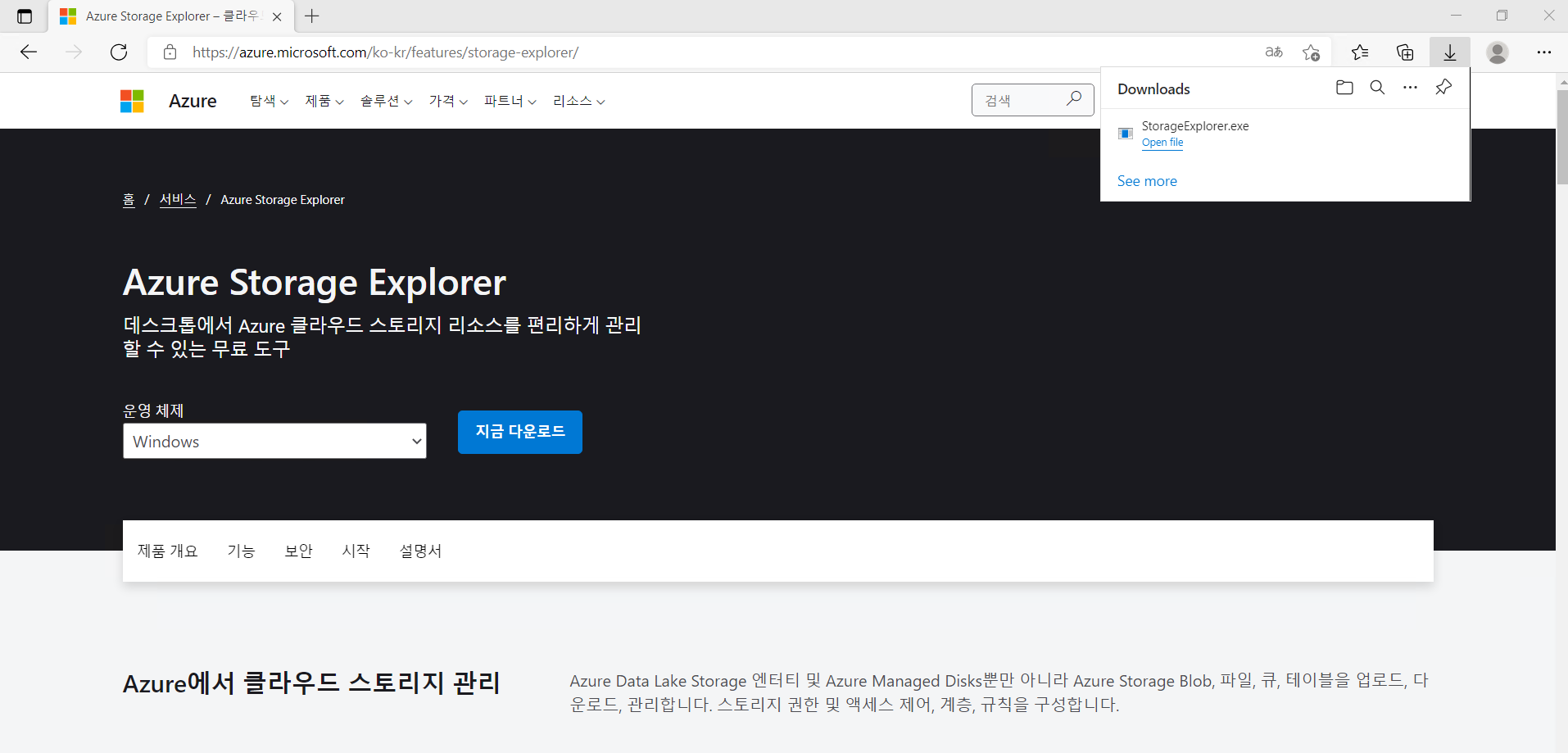[다운로드 링크] https://azure.microsoft.com/ko-kr/features/storage-explorer