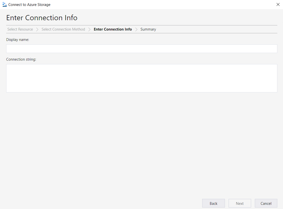 플러그 모양 선택 > Sorage account or servie > Connection string (Key or SAS) 선택