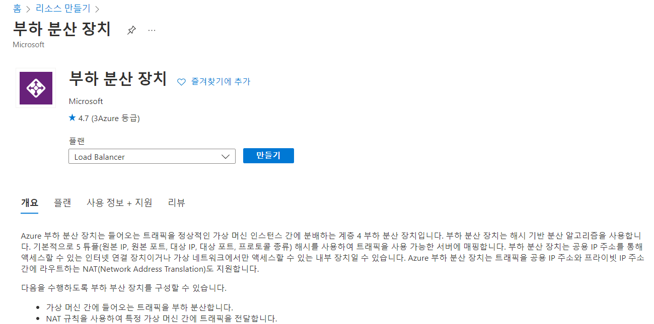 메인 > 리소스 만들기 > 부하분산 장치 선택