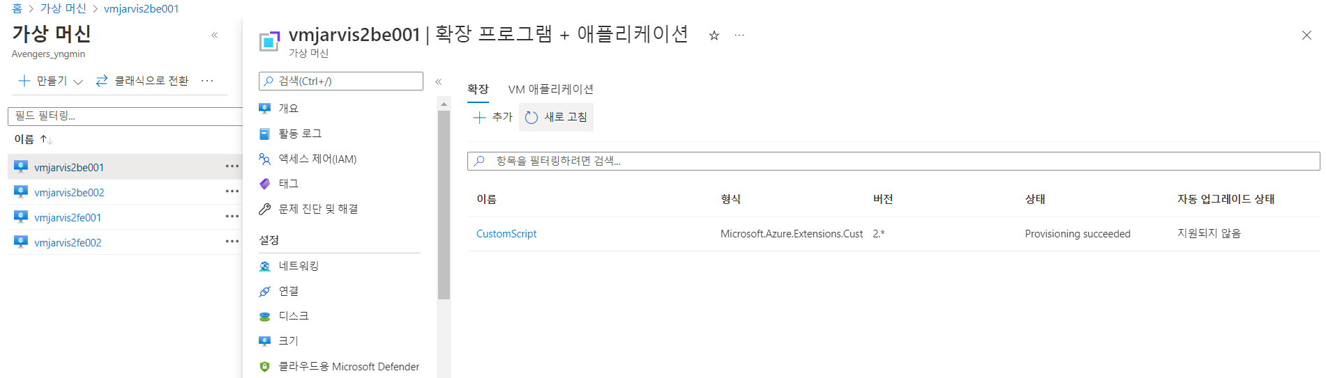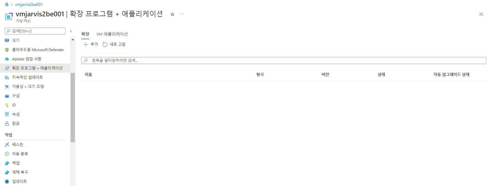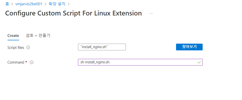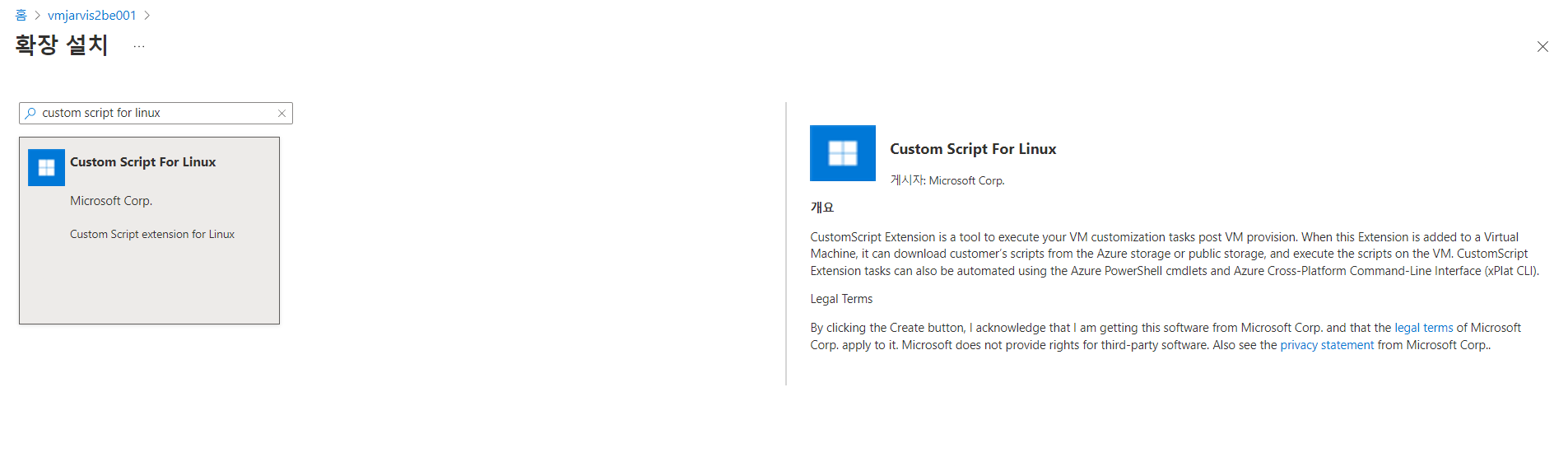 리눅스 서버 인스턴스 > 확장 프로그램 + 애플리케이션 블레이드 > 추가 > Custom Script for linux