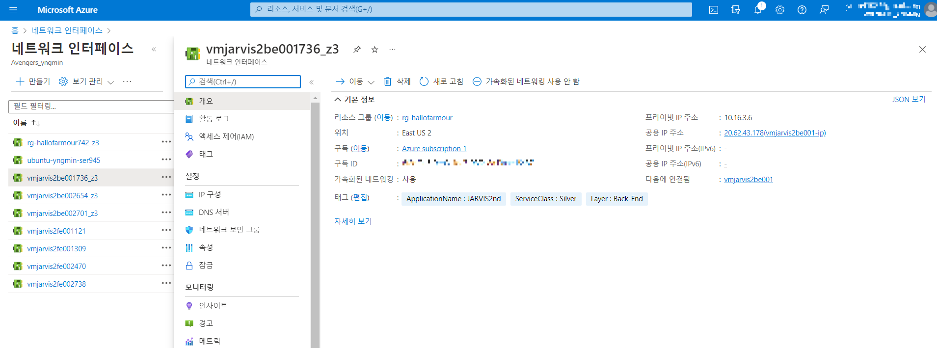 설정 블레이드 > IP 구성 > 하단 ipconfig1 선택