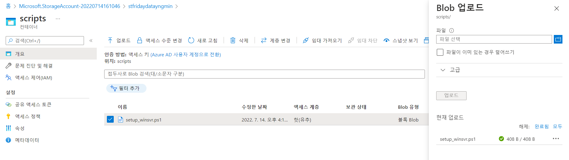 VMSS의 확장 기능을 사용하여 스크립트를 배포하고자 한다. 작성된 스크립트를 배포할 스토리지 계정을 생성한다.