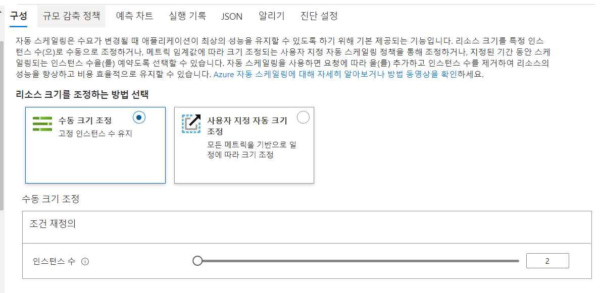 VMSS의 확장 중 블레이드 선택 > 수동 크기 조정 선택
