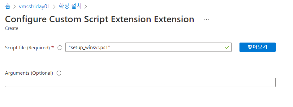 메인 > VMSS > 해당 리소스 선택 > 확장 프로그램 + 애플리케이션 블레이드 > 추가