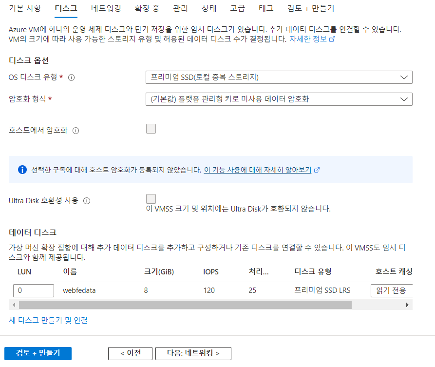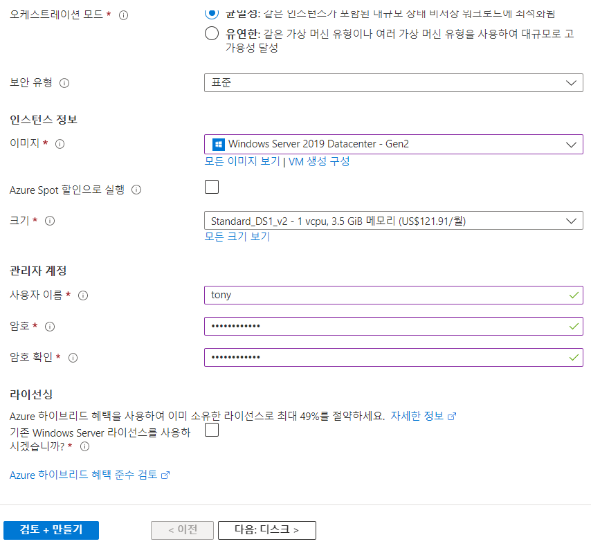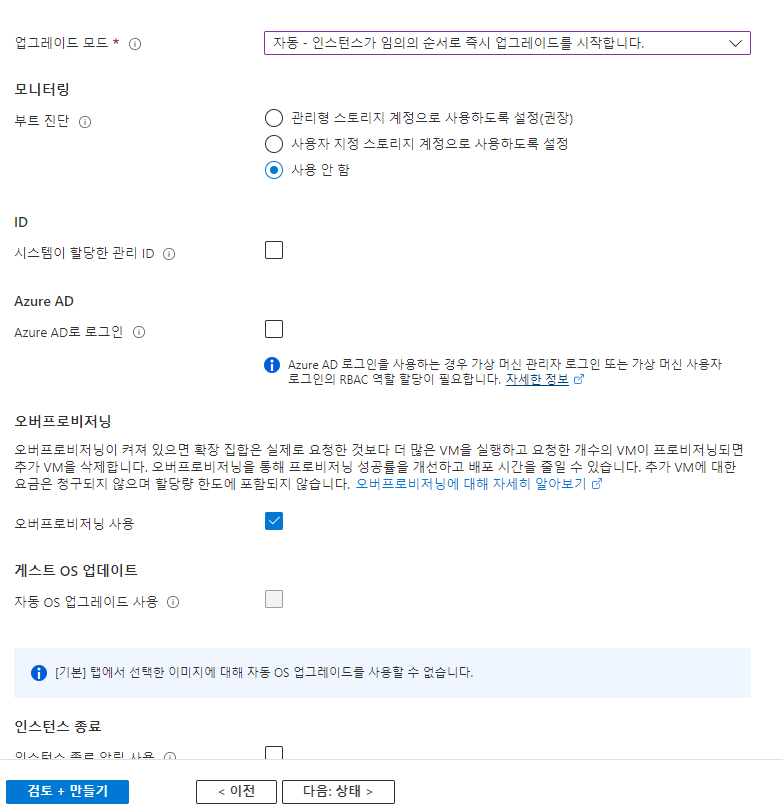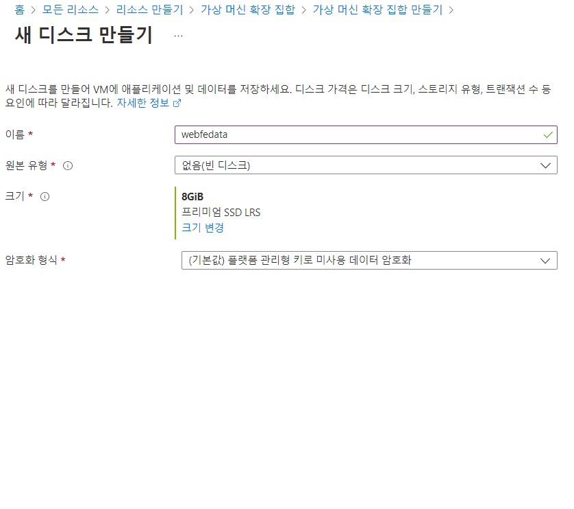 메인 > 리소스 만들기 > 가상 머신 확장 집합 선택 > 만들기