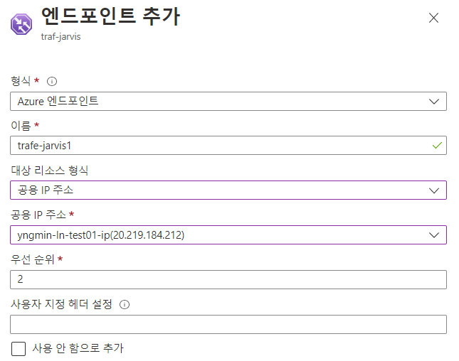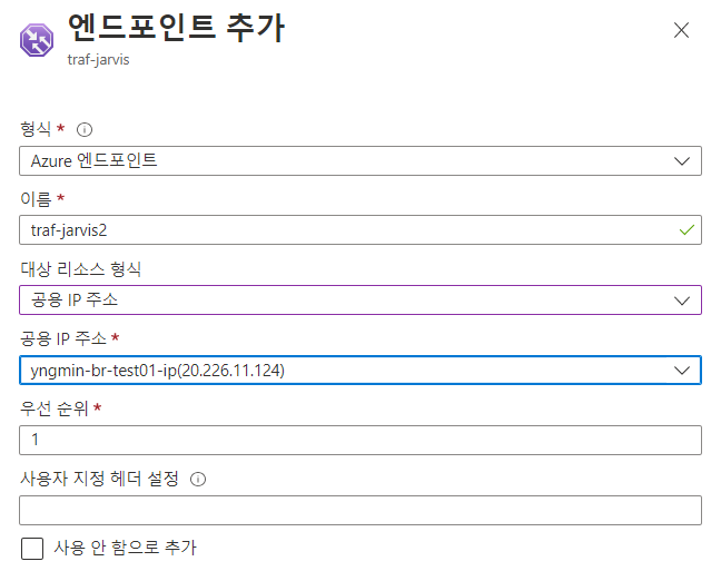 Traffic Manager 프로필 > 엔드포인트 > 추가