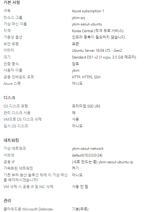 - 가상네트워크 + 가상 머신 생성