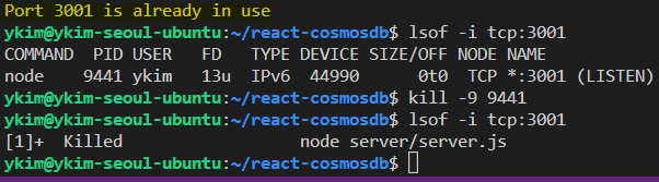 lsof -i tcp:3001 // 포트 확인