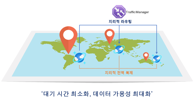 ● 구상 의도: 한국관광을 신청하고자 하는 세계 각 지역의 트래픽에 대하여 Azure의 Cosmos DB의 전역 복제 기능을 활용한다. 주요 지역에 웹서버와 복제된 DB를 위치시키고 Traffic Manager를 활용하여 고객의 접속을 가장 가까운 지역으로 라우트 할 수 있다.
