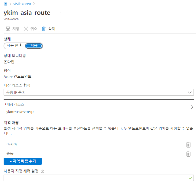 [Azure 프로젝트] 시스템 구축 & Traffic Manager-지리적 라우팅 설정 본문