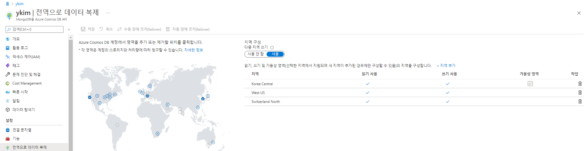 3) CosmosDB 전역 복사 & 엔드포인트 설정