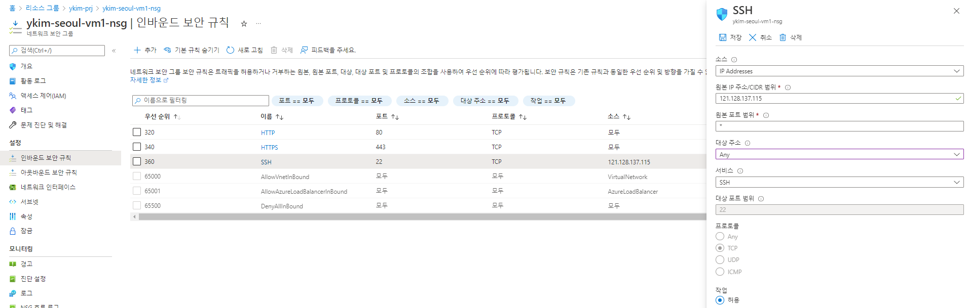개선 조치: SSH, RDP, HTTP/S 포트 모두 관리자 로컬 IP만 허용할 수 있는 정책을 추가한다.