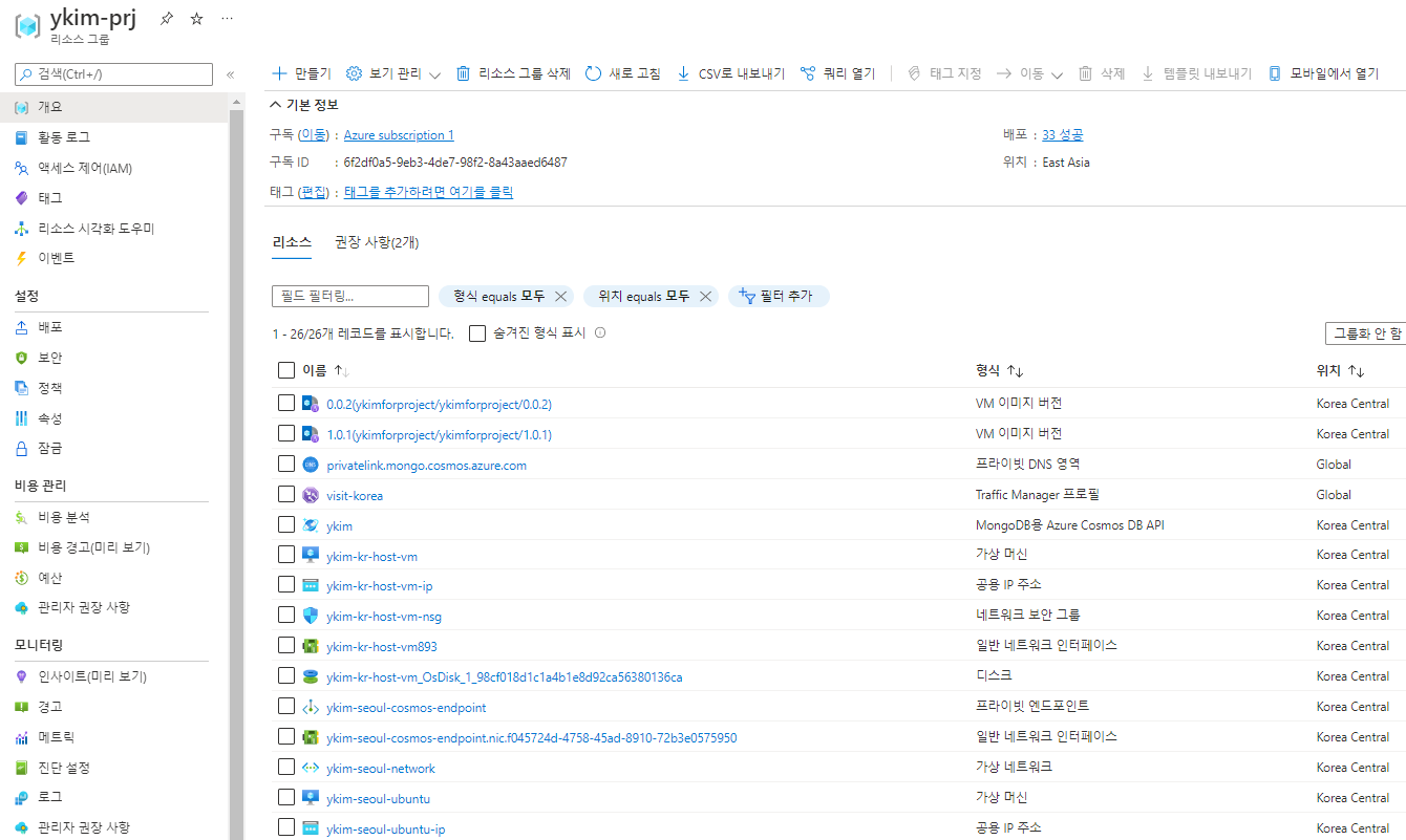[Azure 프로젝트 2/2] 시스템 구축 & Traffic Manager-지리적 라우팅 설정