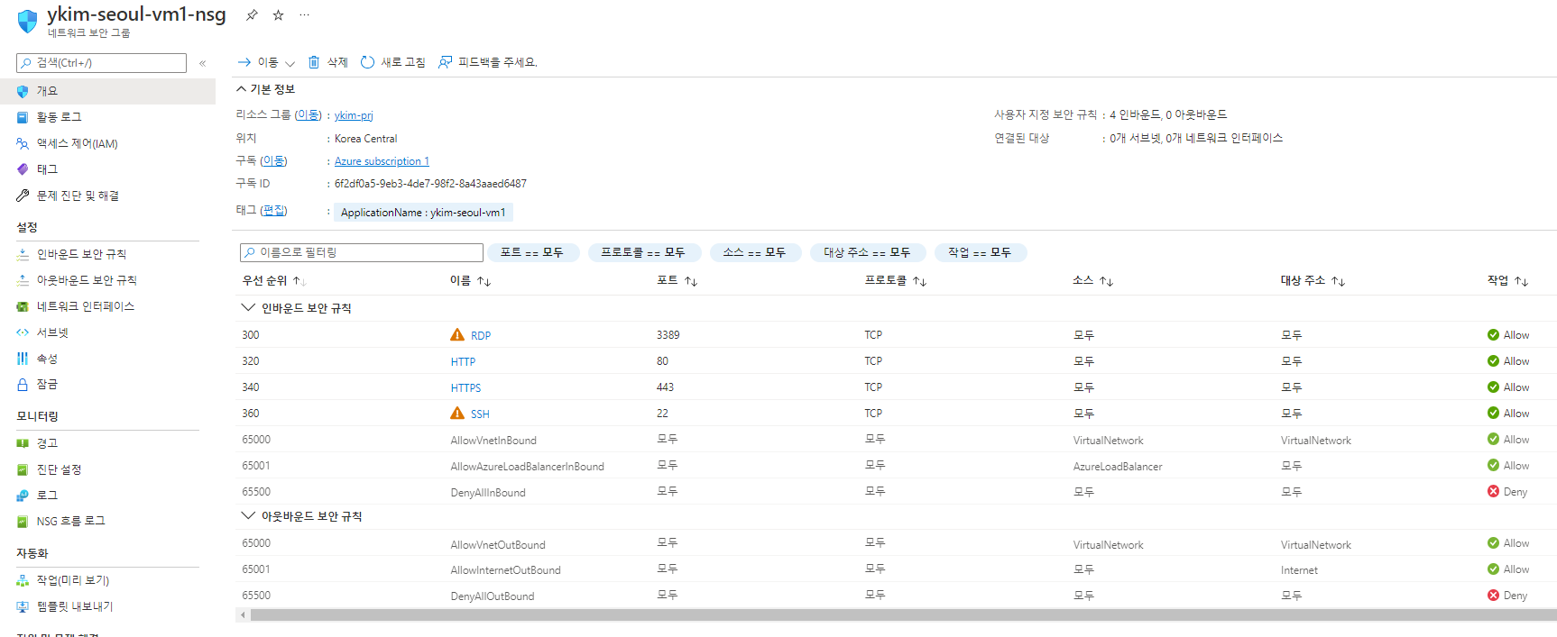 보안 그룹 인/아웃바운드 ANY 설정 관리