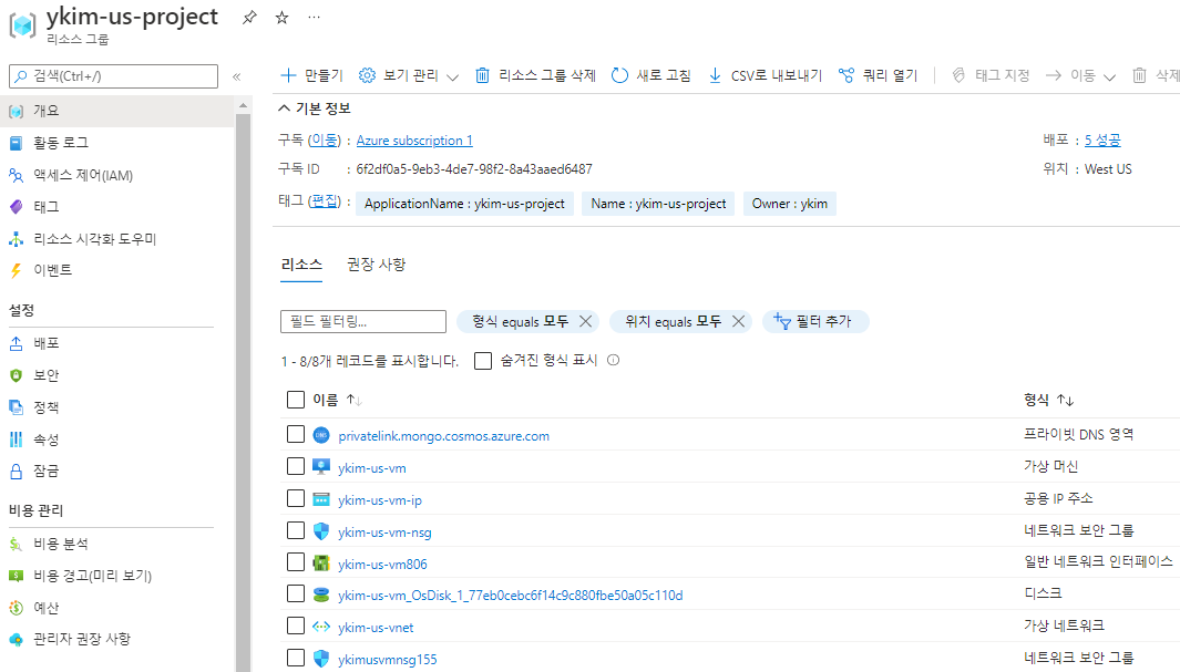 개선 조치: 리소스 그룹별로 관리 및 서비스 운영 목적의 리소스들을 포함시키고 태그 명명을 통해 관리한다.