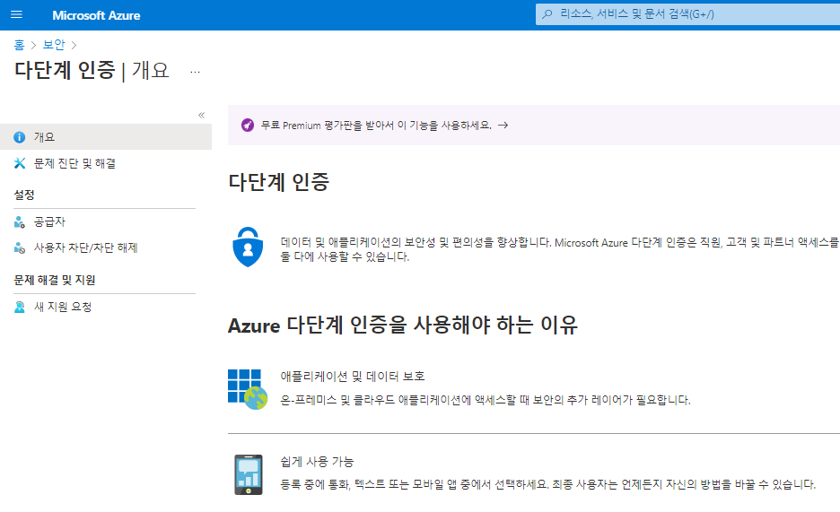 메인 > 보안 > 다단계 인증 선택