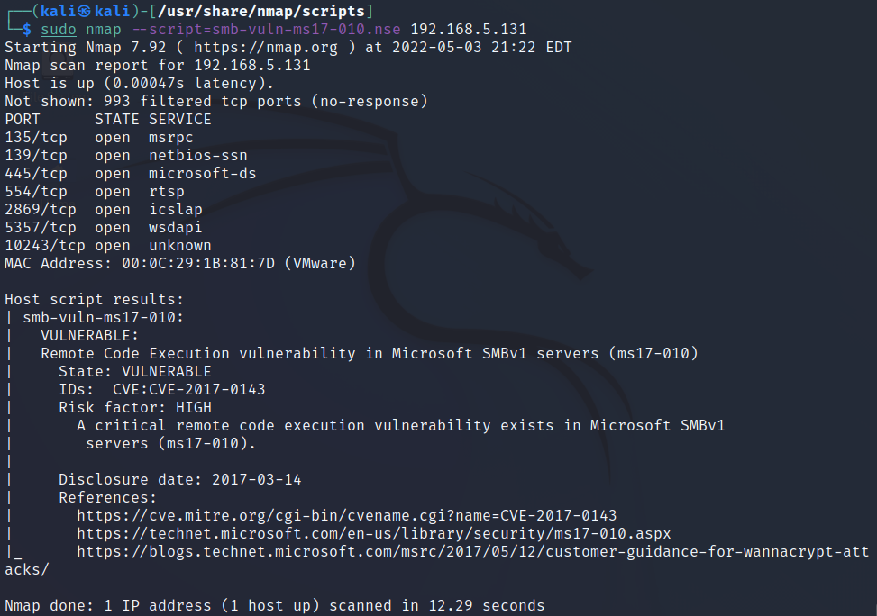 nmap상 스크립트는 smb관련 스크립트가 너무 많다. => Window7 출시 이후에 나온 취약점 (2009~)로 추리기