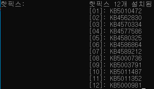 Window7의 cmd>systeminfo입력, 핫픽스(Hotpix)가 있음 (hotpix는 MS의 패치)