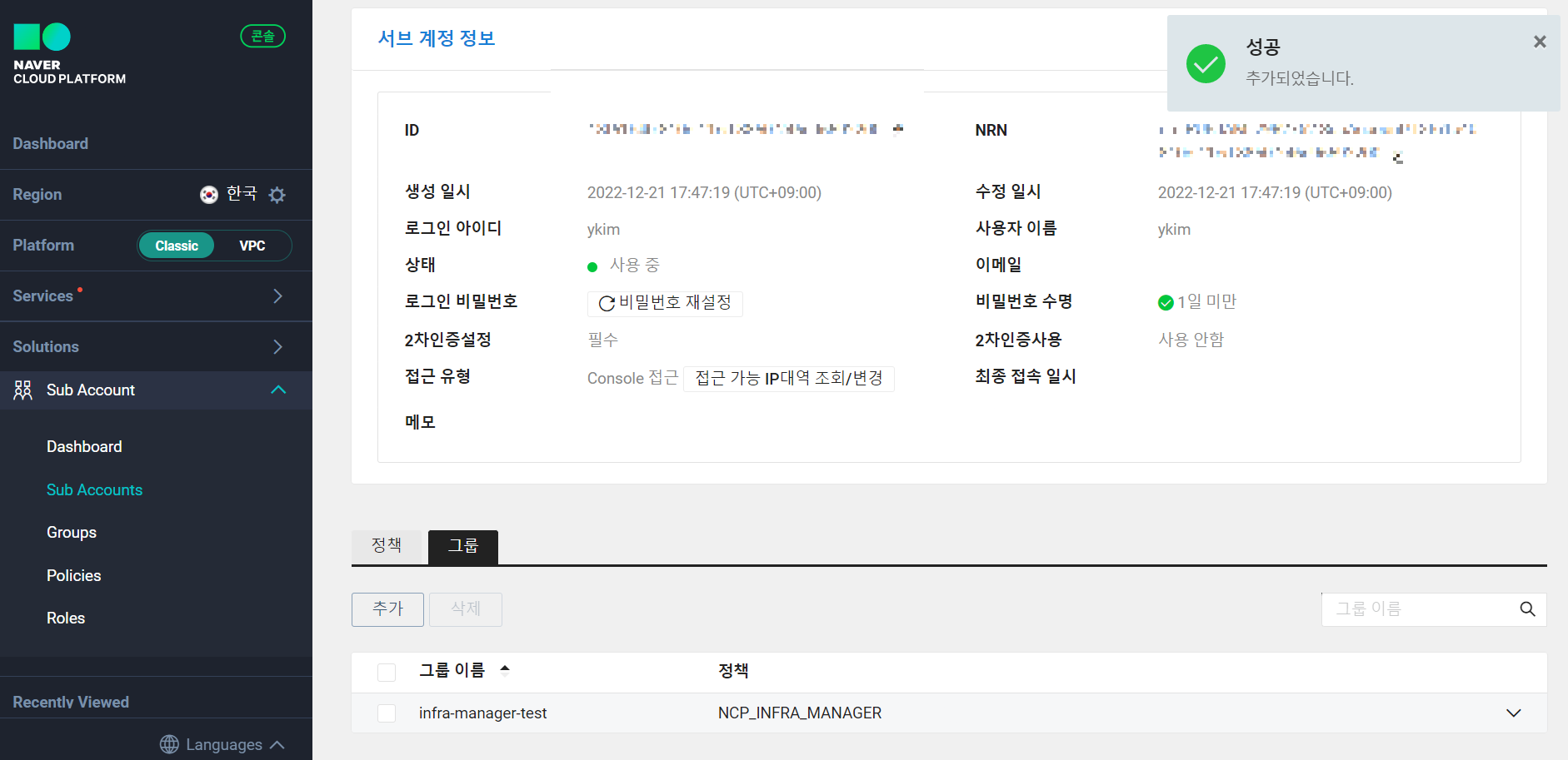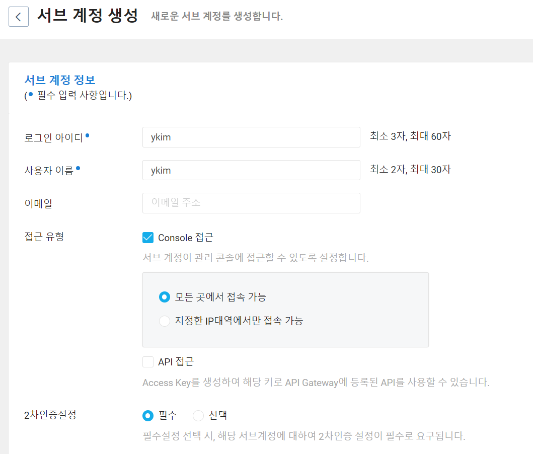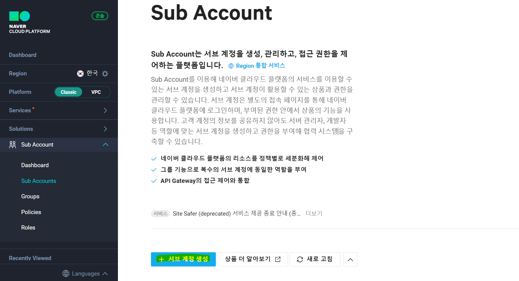 [NCP] 처음 만나는 네이버 클라우드 - Sub Account 만들기 본문