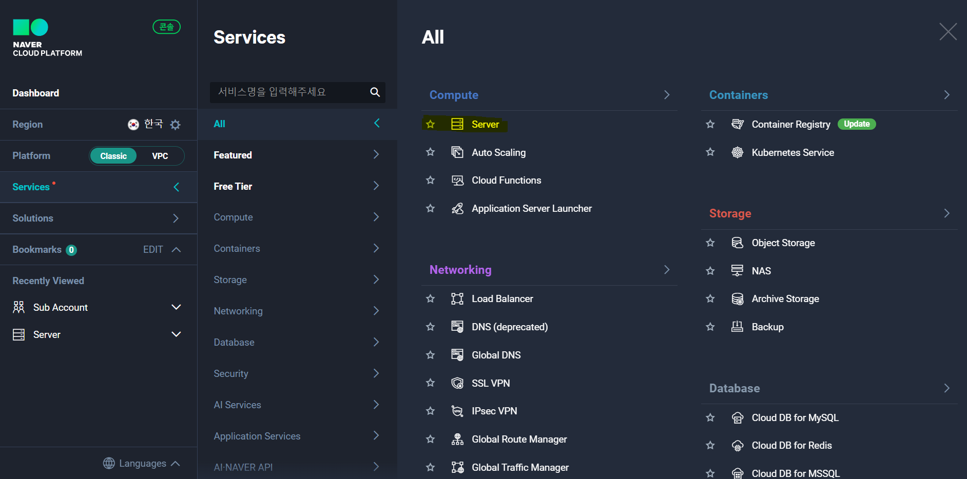 지난 포스팅에선 일반 사용자들을 위한 Sub Account를 생성하였고 이번엔 테스트 서버를 구축하며 NCP가 제공하는 서비스에 대해 알아보자.
