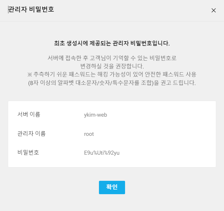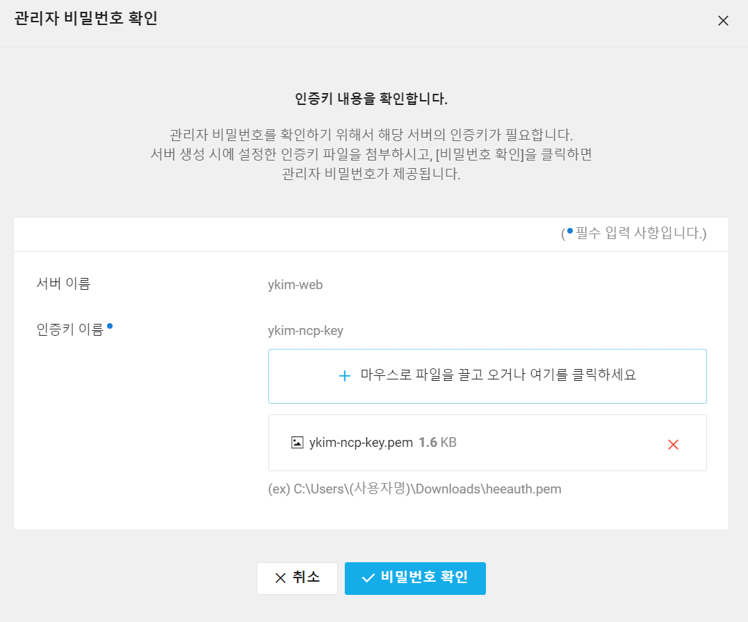 SSH를 통한 root 접속시 최초 비밀번호를 확인해야 한다. 이때 서버 생성 때 다운로드한 인증키(. pem)가 사용된다.