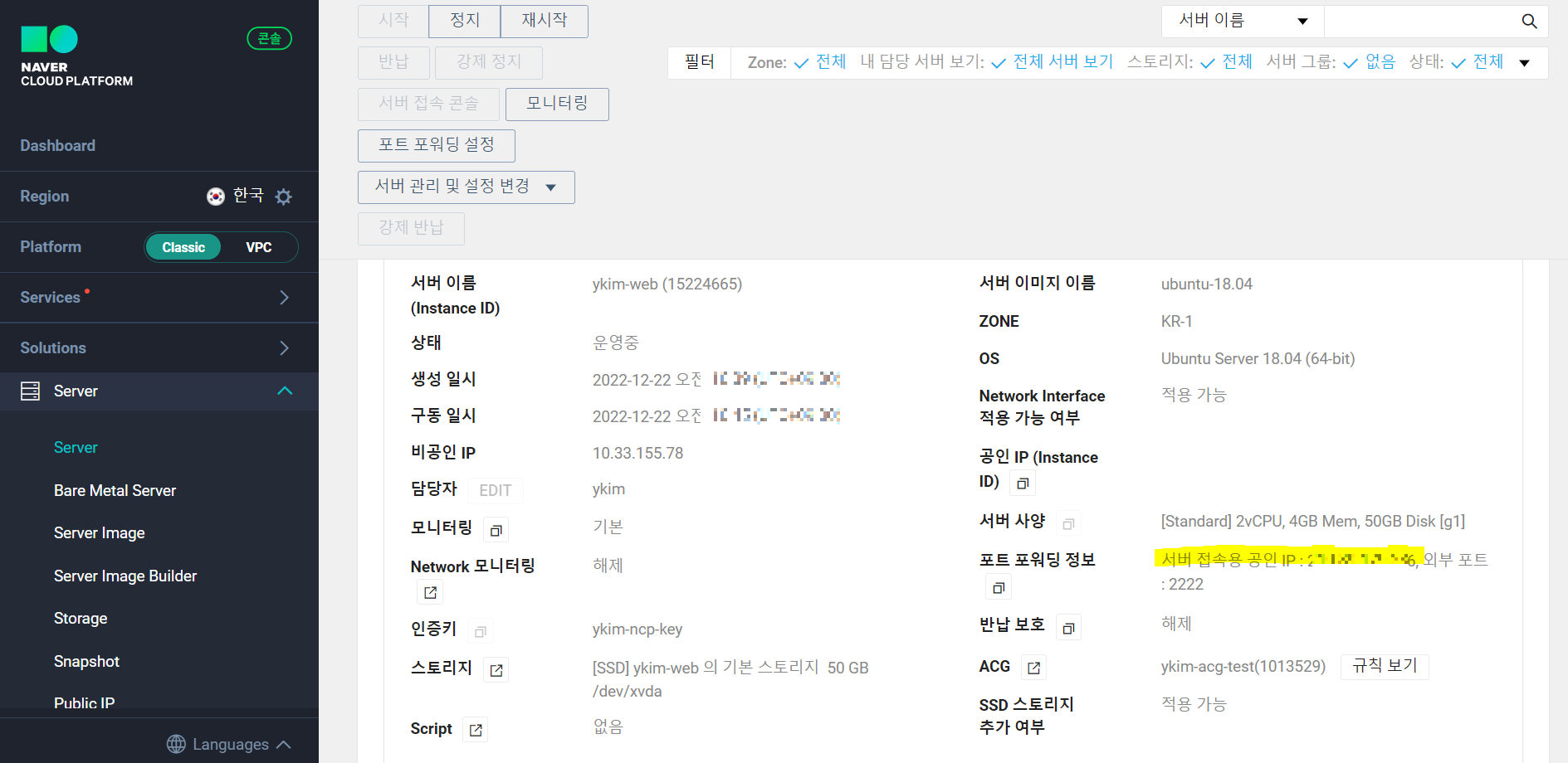[서버 구축 참고] 2022.12.22 - [클라우드 보안] - [NCP] 처음 만나는 네이버 클라우드 - 서버 구축하기