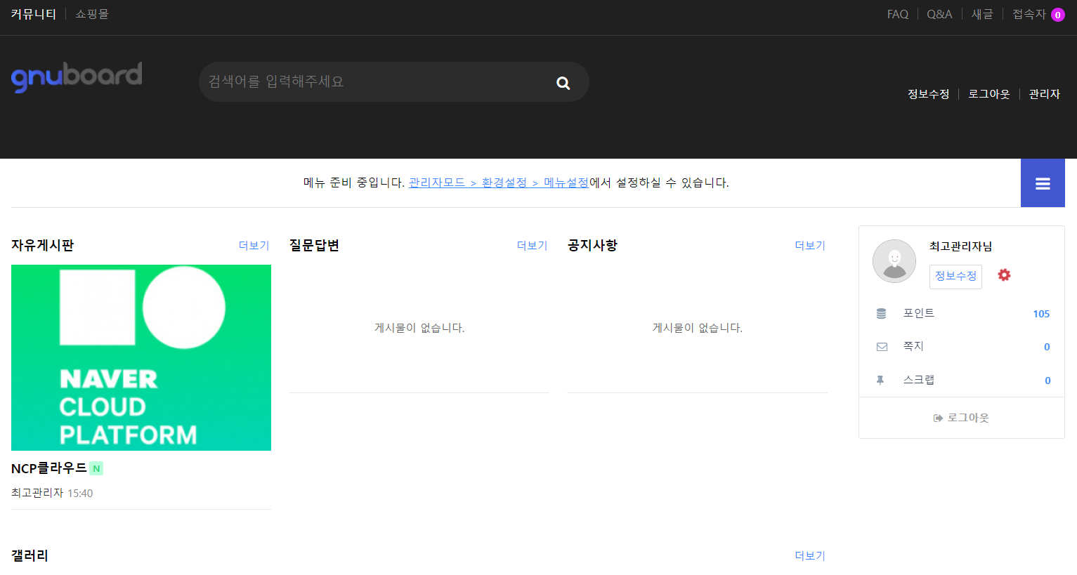 3. 웹서비스 설치 후 접속확인 (그누보드 5)