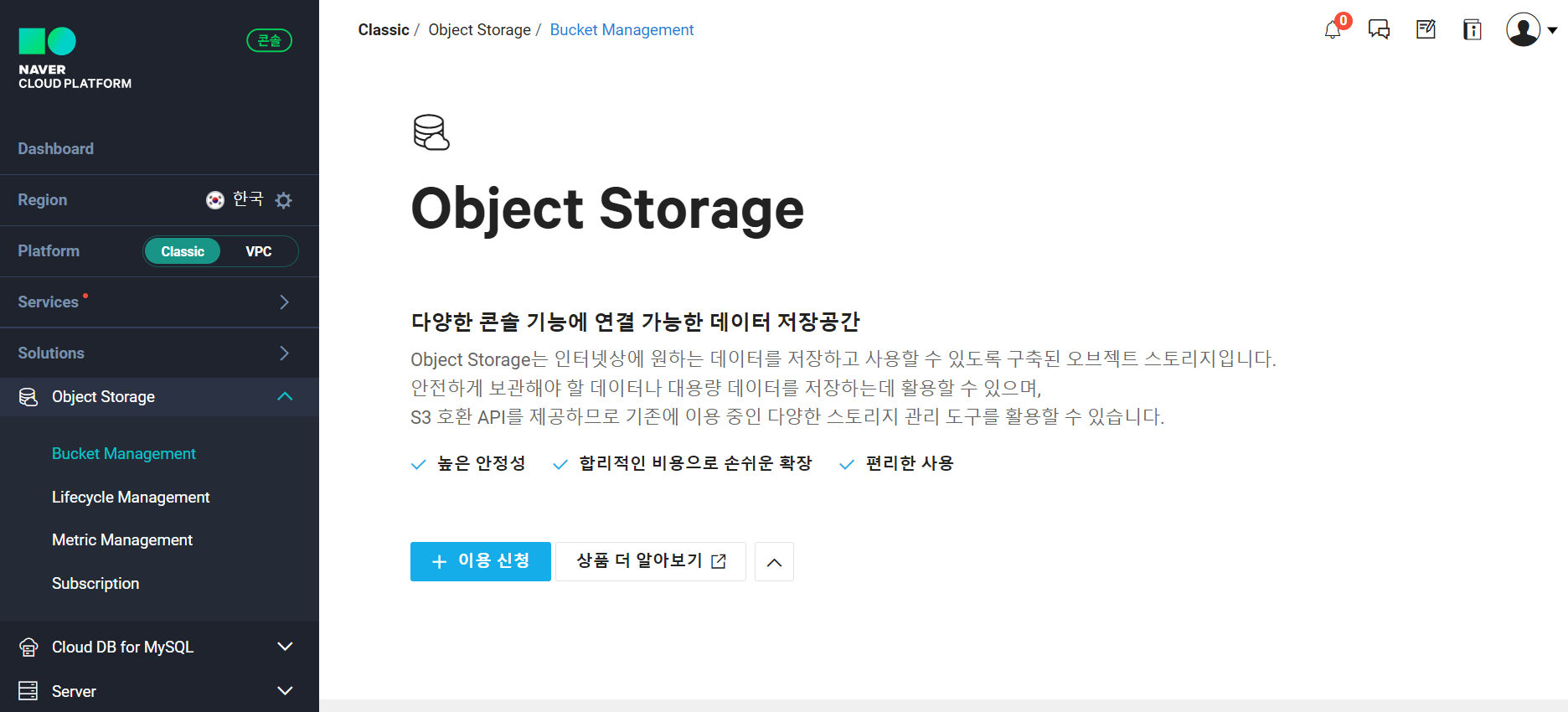 이번 포스팅에선 NCP가 제공하는 파일 저장 공간 서비스 'Object Storage'를 생성해 보자.