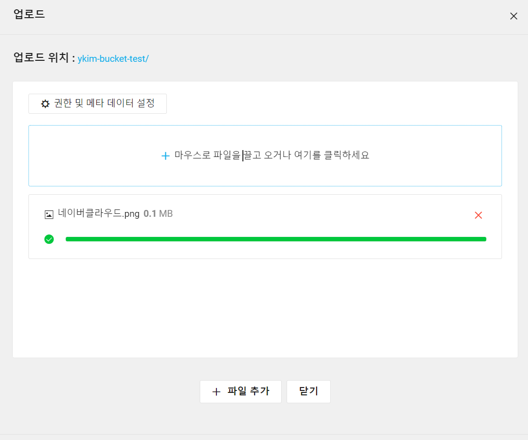 왼쪽 Object Storage 탭 > 해당 버킷 선택 > '파일 올리기' 선택